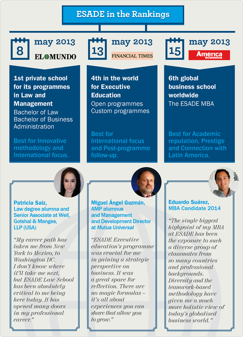 May was a feverish month for rankings. In just over a week, ESADE Business and Law Schools took their place among the best in three top rankings around the world.