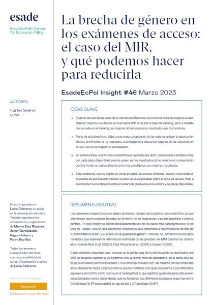 Los exámenes competitivos son objeto de intenso debate tanto público como científico, ya que distribuyen oportunidades basadas en el mérito de las respuestas, y puede penalizar a ciertos perfiles. En este insight se analiza detalladamente uno de los casos más paradigmáticos: el del MIR en España, una prueba altamente competitiva que determina el futuro laboral de más de 10,000 médicos al año, y su efecto en la igualdad de género. Para ello, se utilizaron tres estudios recientes que examinaron información individual de las pruebas del MIR durante los últimos años: Conde-Ruiz et al. (2020), Díez-Rituerto et al. (2023) y Sunyer (2023).