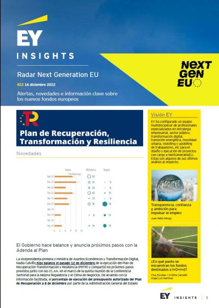 Radar Next Generation es un producto de EY Insights de alertas, novedades e información clave sobre los fondos europeos. Descarga y lee el radar de diciembre 2022.