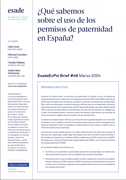 Concloem que cal més investigació per avaluar l’impacte d’aquestes reformes en la promoció de la igualtat de gènere. Les evidències existents apunten a resultats contradictoris pel que fa a l’impacte sobre la bretxa de gènere en el mercat laboral, i diversos estudis constaten un augment de la implicació dels pares en la cura dels fills. També és important assenyalar que, com suggereixen altres estudis, alguns efectes es poden manifestar a llarg termini o entre les generacions futures.