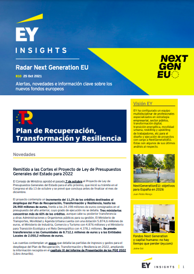 Radar Next Generation es un producto de EY Insights de alertas, novedades e información clave sobre los fondos europeos. Descarga y lee el radar de octubre 2021.