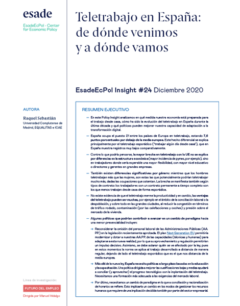 En aquest Policy Insight analitzem en quina mesura la nostra economia està preparada per al treball des de casa, com ha evolucionat el teletreball a Espanya durant l’última dècada i quines polítiques podrien millorar la nostra capacitat d’adaptació a la transformació digital.