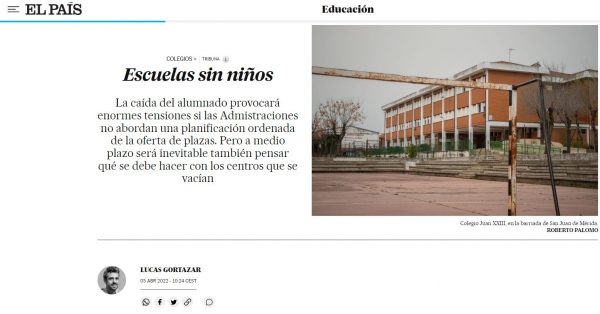 “La caída del alumnado provocará enormes tensiones si las Administraciones no abordan una planificación ordenada de la oferta de plazas. Pero a medio plazo será inevitable también pensar qué se debe hacer con los centros que se vacían”, por Lucas Gortazar.