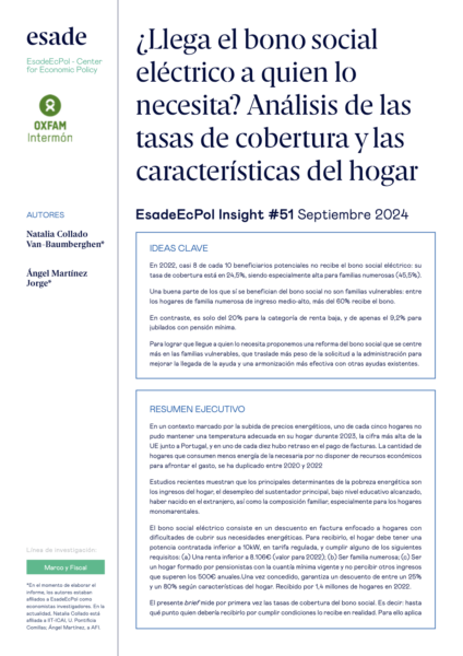 El presente informe mide por primera vez las tasas de cobertura del bono social. Es decir: hasta qué punto quien debería recibirlo por cumplir condiciones lo recibe en realidad. Para ello aplica un análisis estadístico multifactorial a una pregunta incluida en la Encuesta de Condiciones de Vida y hasta ahora nunca empleada a tal efecto, junto a todas las características que definen el perfil socioeconómico de cada hogar.