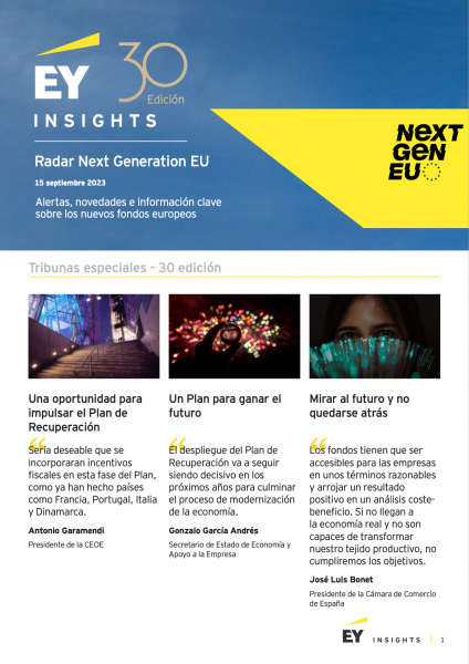 Radar Next Generation es un producto de EY Insights de alertas, novedades e información clave sobre los fondos europeos. Descarga y lee el radar de septiembre de 2023.