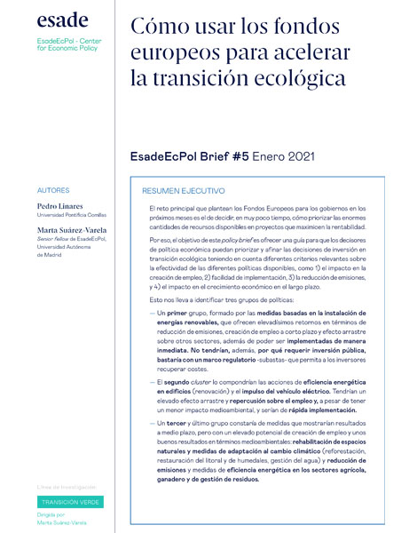 The main challenge facing EU funds is how to strike a balance between reactivating employment and the economy in the short term, in the wake of the coronavirus crisis, and selecting investments that are worthwhile, able to advance decarbonisation and have a long-term impact on Spain’s economy.