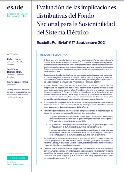 Evaluación de las implicaciones distributivas del Fondo Nacional para la Sostenibilidad del Sistema Eléctrico