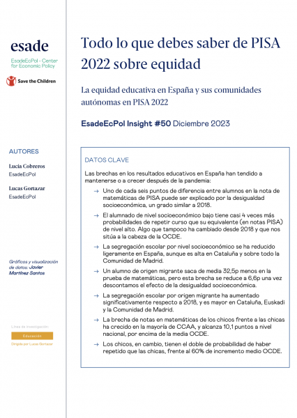 This report assesses the state of equity or equality of educational opportunities in Spain and its autonomous communities, using a detailed and unique analysis of PISA 2022 microdata, comparing it with 2018 data. Understanding educational equity is crucial for the social and economic future of a country, the real opportunities of young people, and present and future human capital and social cohesion. This is particularly relevant in Spain, which has a historically high rate of school failure, which persists.