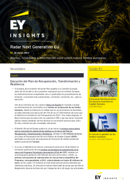 Descarga el Radar Next Generation EU #3, publicado el 26 de marzo de 2021, con más contenido de interés.