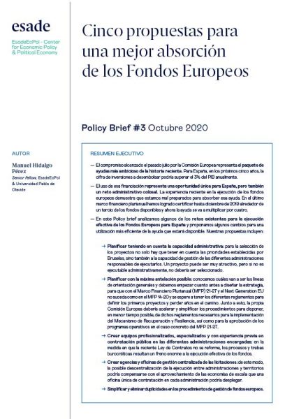 European funds are a unique opportunity for Spain, but also a colossal administrative challenge. Recent experience in the implementation of European funds shows that we are ill-prepared to absorb this aid. In the last multiannual financial framework we managed to certify – by December 2019 – around a third of the available funds, and now the aid is going to be multiplied by four.