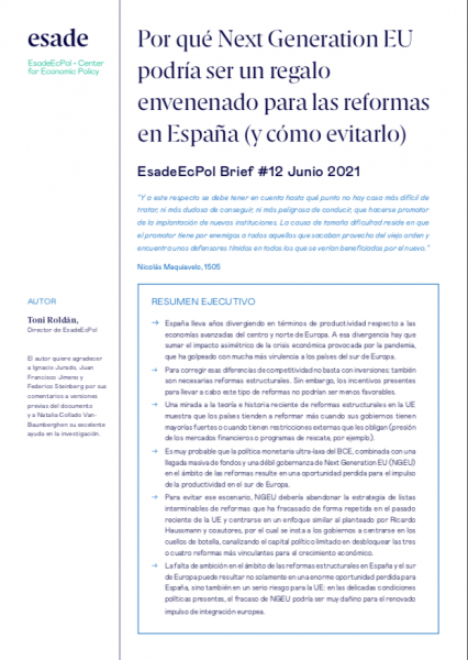 - La falta de ambición en el ámbito de las reformas estructurales en España y el sur de Europa puede resultar no solamente en una enorme oportunidad perdida para España, sino también en un serio riesgo para la UE: en las delicadas condiciones políticas presentes, el fracaso de NGEU podría ser muy dañino para el renovado impulso de integración europea.