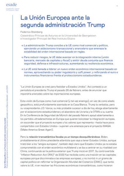 → The EU is called to lead a new international economic order based on norms, leveraging its regulatory power and soft power, while strengthening the euro and financial instruments against U.S. protectionism.