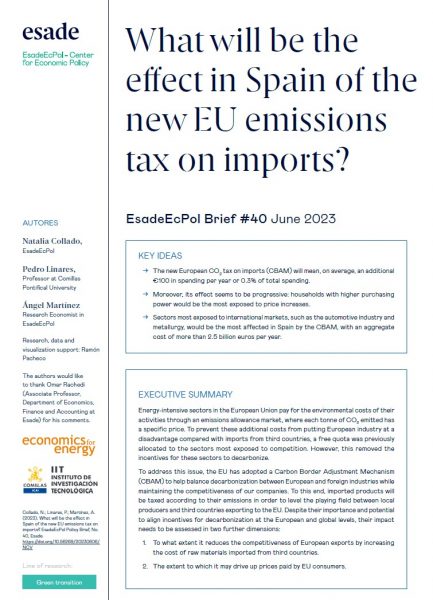 Collado, N.; Linares, P.; Martínez, A. (2023). What will be the effect in Spain of the new EU emissions tax on imports? EsadeEcPol Policy Brief, No. 40, Esade. https://doi.org/10.56269/20230606/NCV
