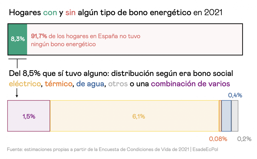 De hecho, calibramos con la Encuesta de Condiciones de Vida de 2021 que los bonos energéticos no llegan sino a 8,3% de los hogares en España, aunque un 14,3% declaró que tuvo problemas para mantener su vivienda a una temperatura adecuada.