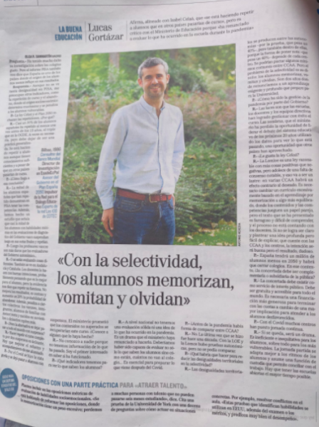Lucas Gortázar: «El problema de la Selectividad es que los alumnos memorizan, vomitan y olvidan»