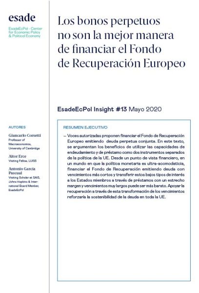 Voces autorizadas proponen financiar el Fondo de Recuperación Europeo emitiendo deuda perpetua conjunta. En este texto, se argumentan los beneficios de utilizar las capacidades de endeudamiento y de préstamo como dos instrumentos separados de la política de la UE. Desde un punto de vista financiero, en un mundo en que la política monetaria es ultra-acomodaticia, financiar el Fondo de Recuperación emitiendo deuda con vencimientos más cortos y transferir estos bajos tipos de interés a los Estados miembros a través de préstamos con un estrecho margen y vencimientos muy largos puede ser más barato. Apoyar la recuperación a través de esta transformación de los vencimientos reforzaría la sostenibilidad de la deuda en toda la UE.