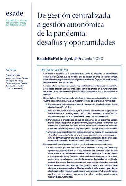 De gestión centralizada a gestión autonómica de la pandemia: desafíos y oportunidades