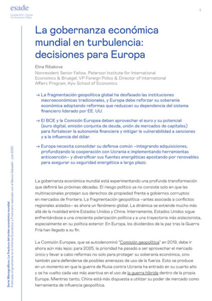 La gobernanza económica mundial en turbulencia: decisiones para Europa